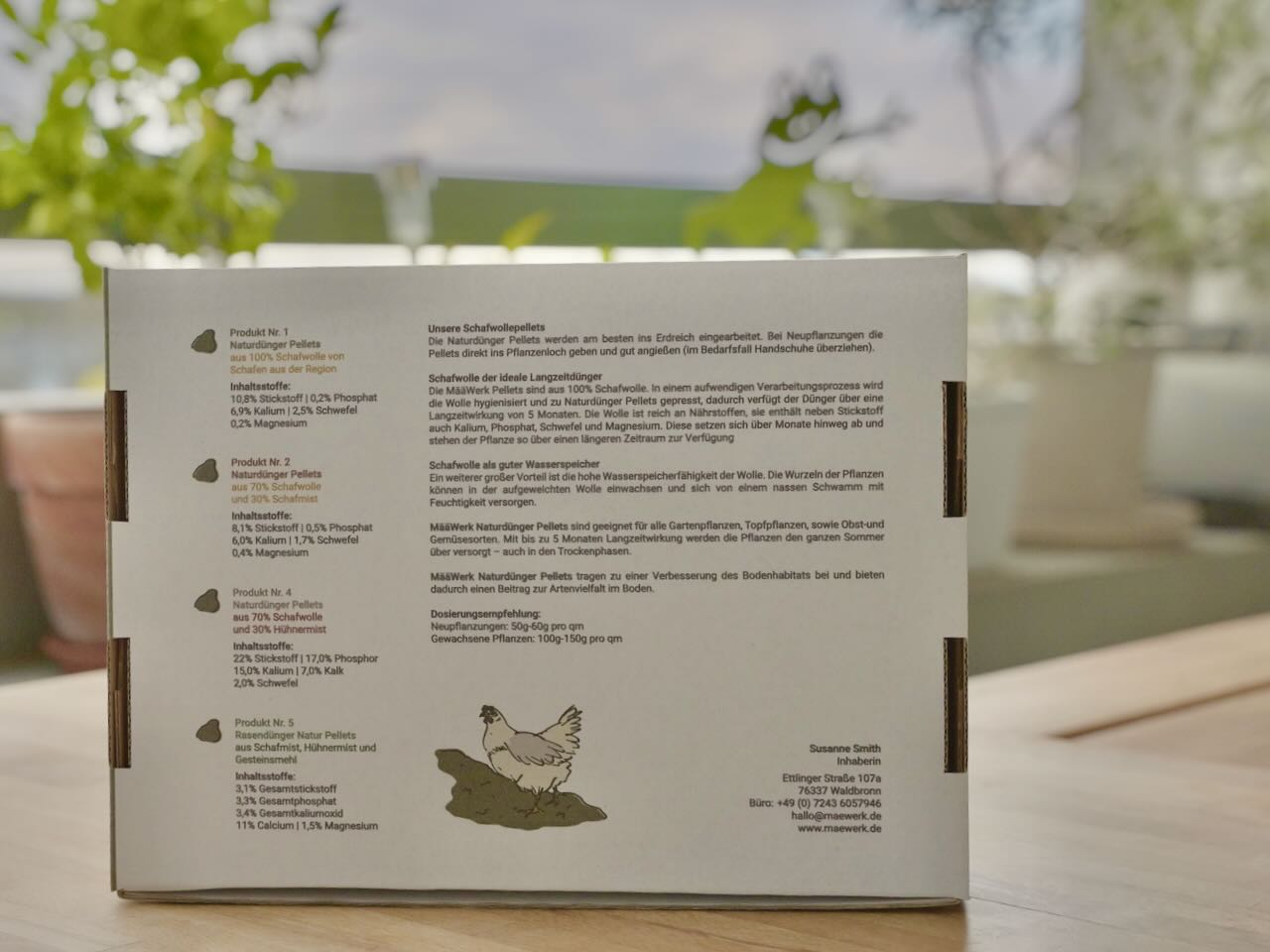 Ich bin Susanne Smith – Gründerin von määwerk. Was mit der Schur meiner eigenen Schafe begann, entwickelte sich schnell zu einer neuen Idee: Wolle sinnvoll und nachhaltig weiterzuverwenden. So entstanden unsere natürlichen Düngepellets aus Schafwolle. Sie werden regional produziert und stehen für eine umweltfreundliche Alternative zu herkömmlichen Düngern. Die Pellets geben Nährstoffe langsam und schonend an den Boden ab. Gleichzeitig verbessern sie die Bodenstruktur und speichern Feuchtigkeit. Damit leisten sie einen wertvollen Beitrag für gesundes Pflanzenwachstum. Für mich ist es eine Herzensangelegenheit, Kreisläufe zu schließen und Ressourcen sinnvoll zu nutzen.
